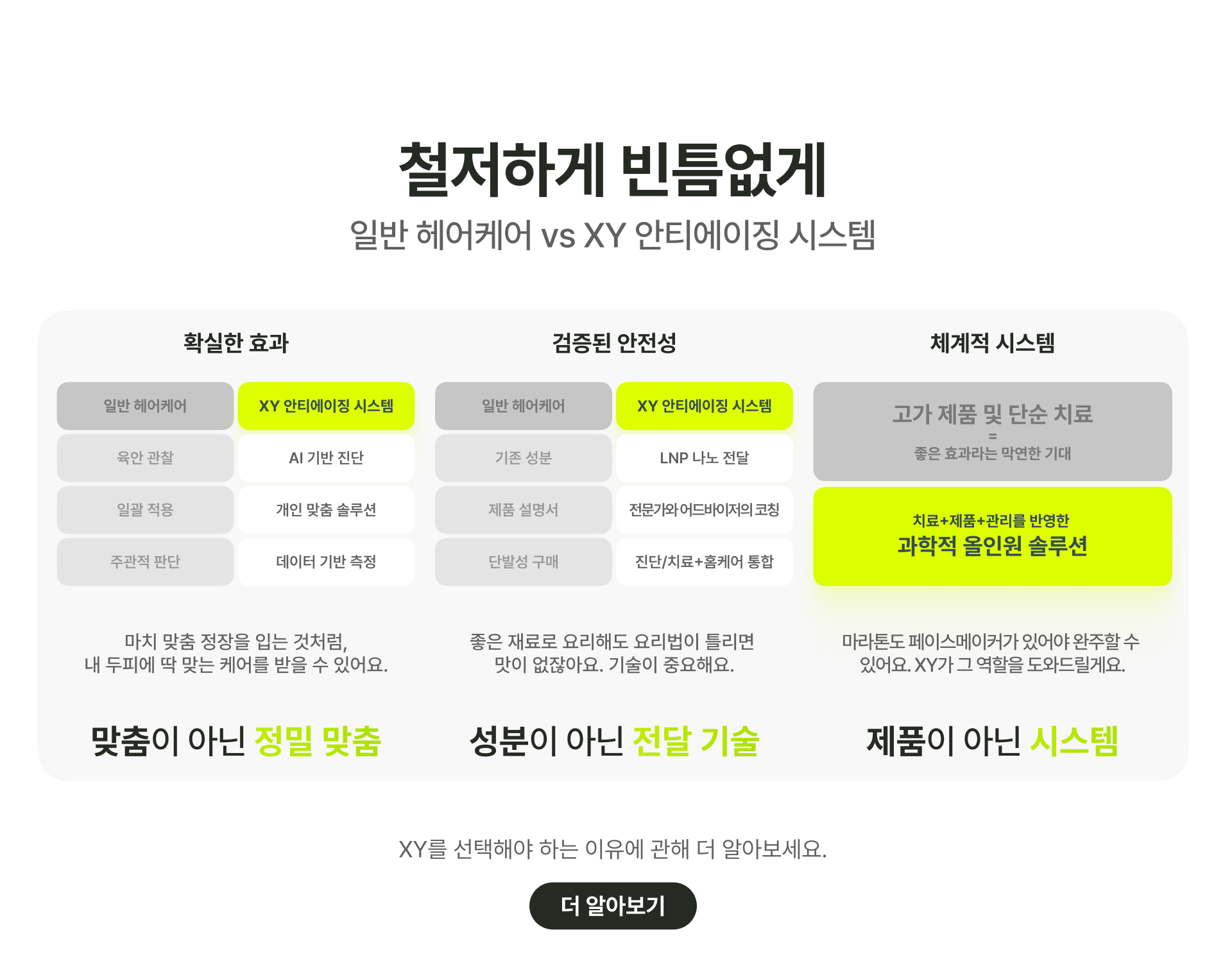 • 장기 전략: 효과 안정화 후 방문 주기 및 제품 사용 빈도 조절 가능