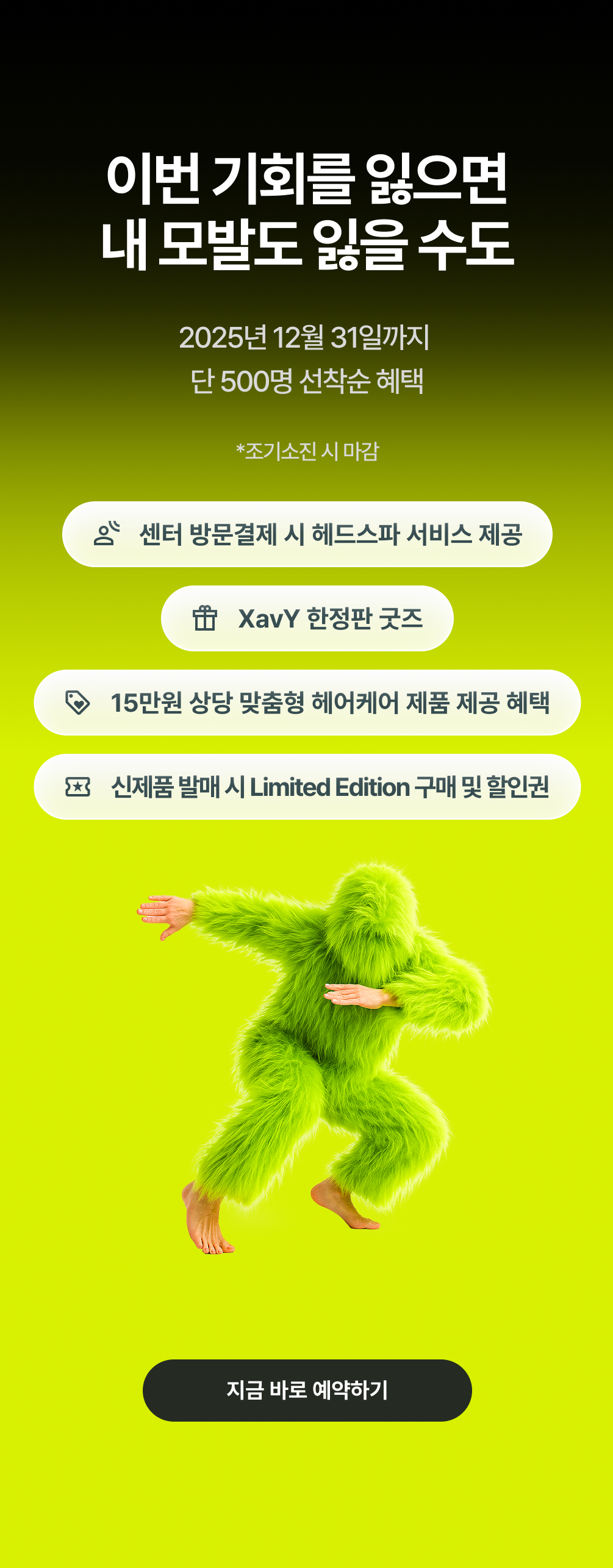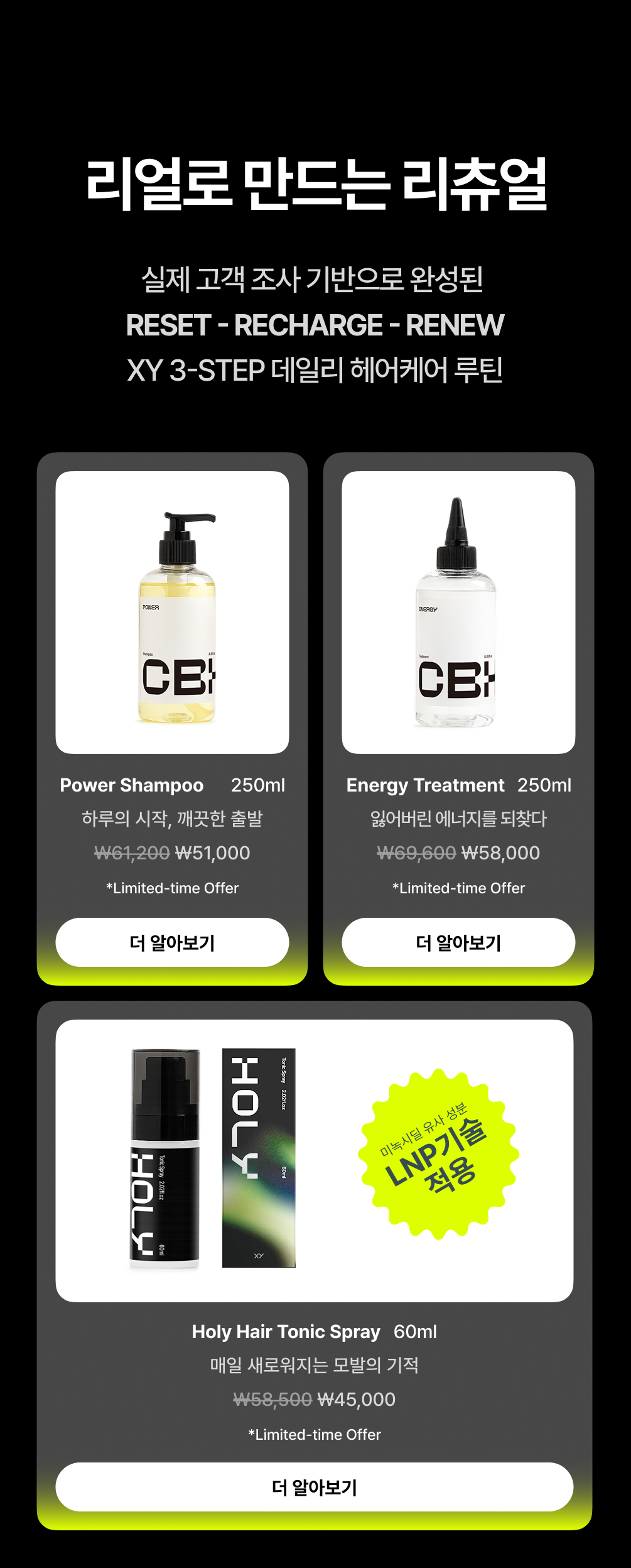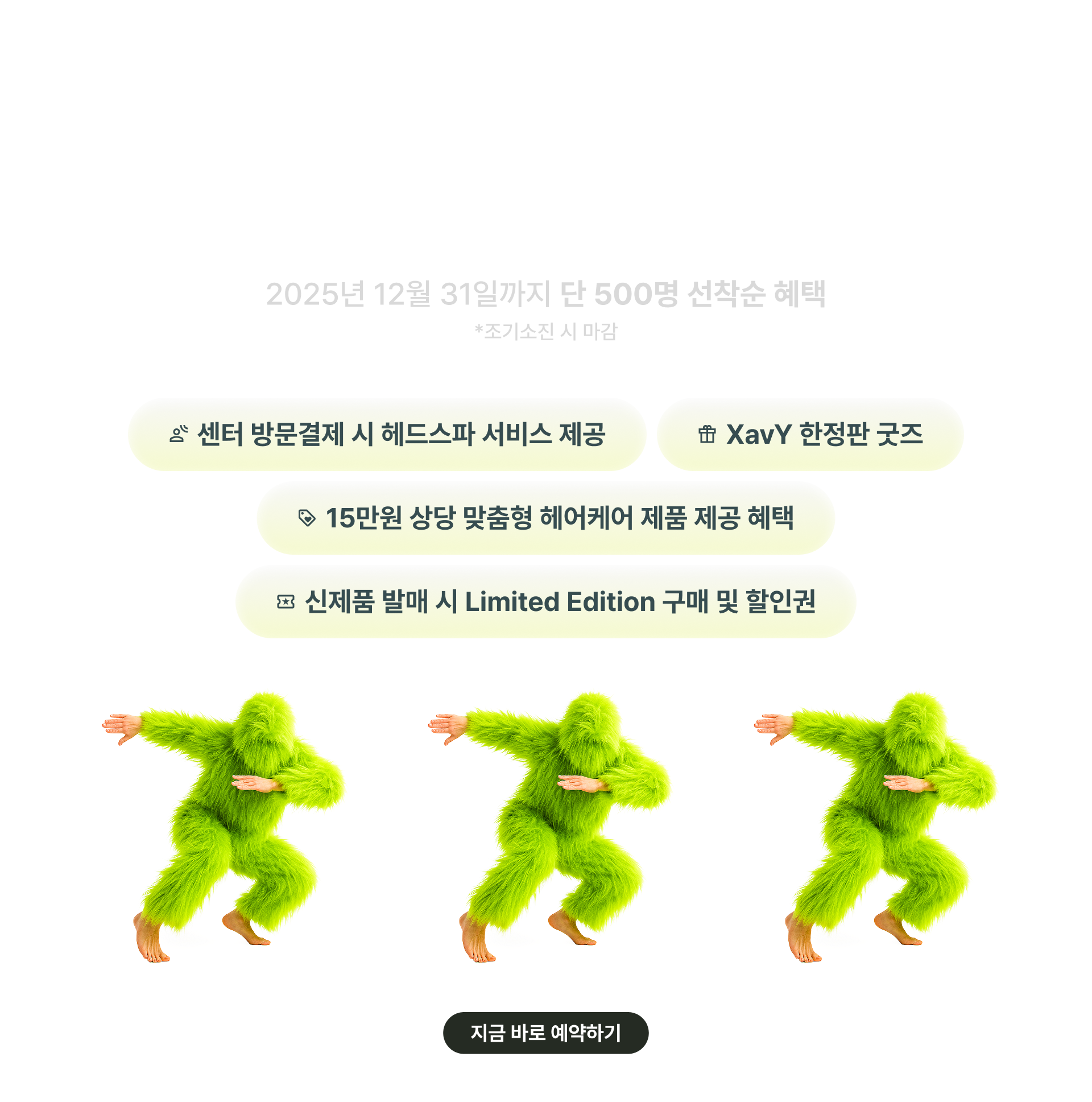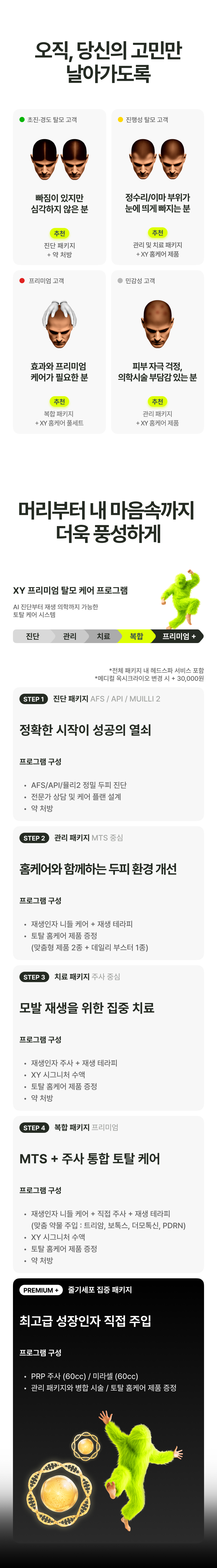 한정기간 혜택으로 현재 결제 프로그램에 따라 관리 프로그램은 샴푸+트리트먼트, 치료 프로그램은 토닉스프레이 포함, 복합 프로그램은 3종 풀세트를 무료로 받으실 수 있으니 지금 문의하세요!