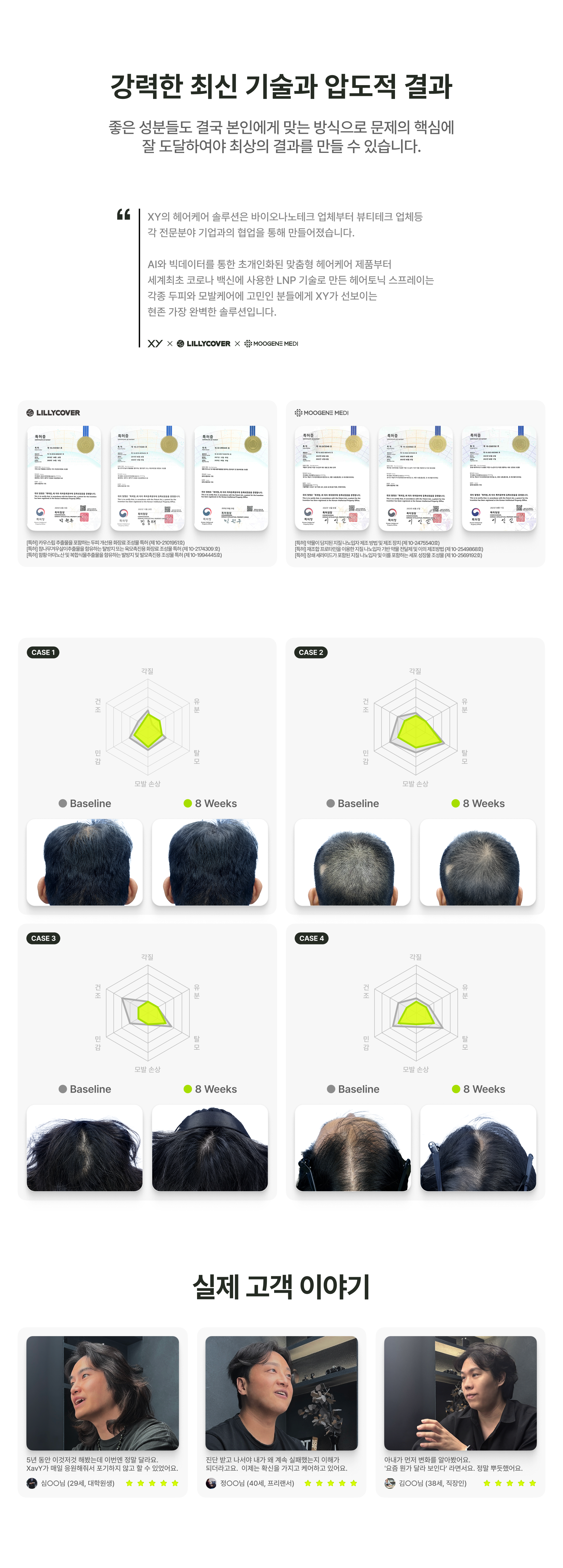 임상시험 결과 12주 후 78%의 참가자가 모발 밀도 개선을 경험했습니다. (개인차 존재)